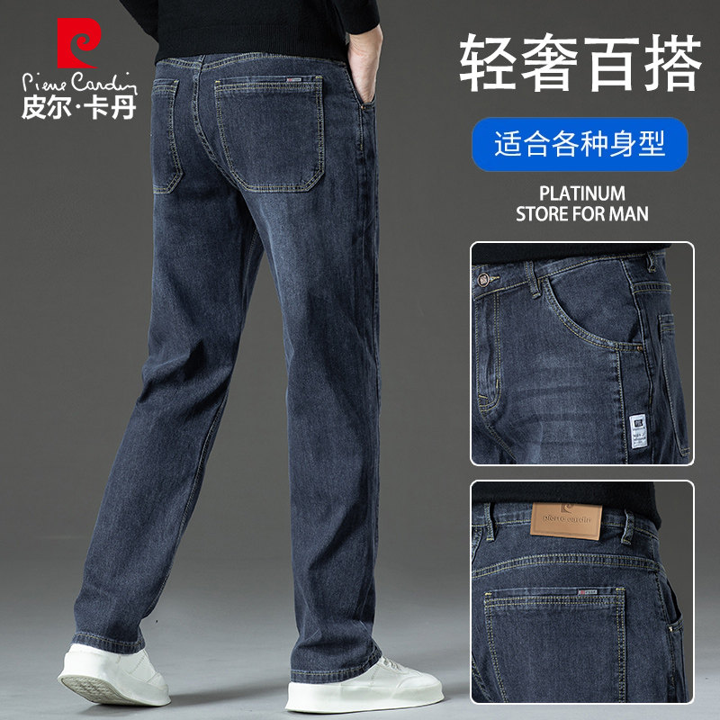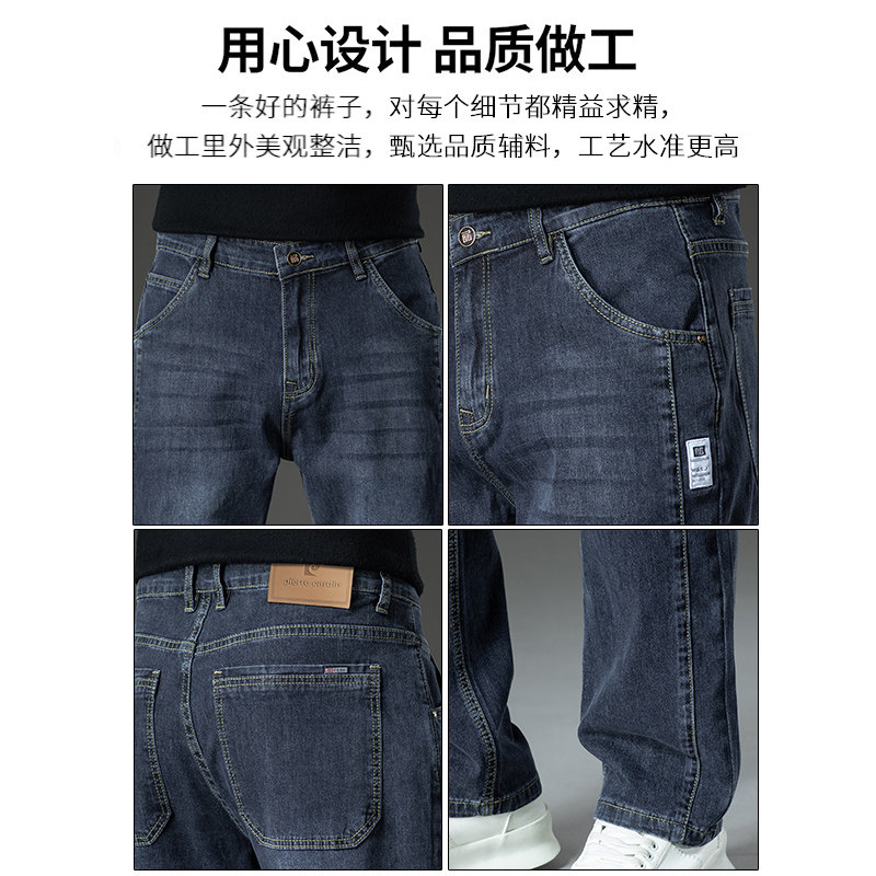 皮尔卡丹2025秋冬新款高端牛仔裤男士休闲商务宽松直筒长裤子弹力