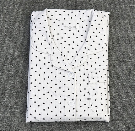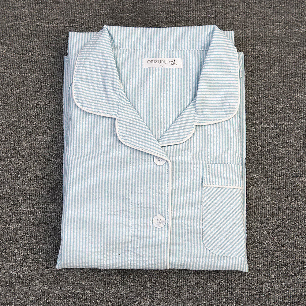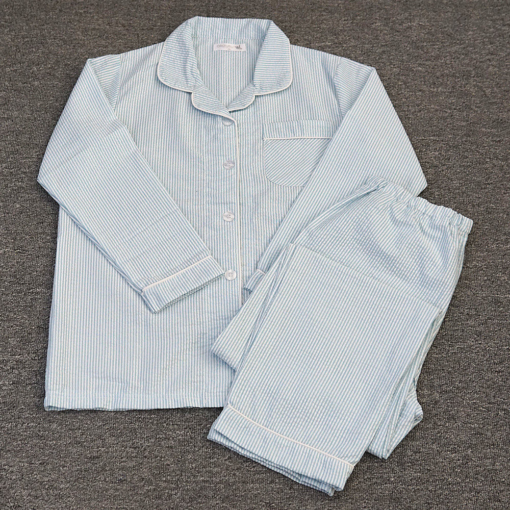 女款纯棉睡衣泡泡棉布春夏季简约全棉梭织家居服开衫长袖长裤套装