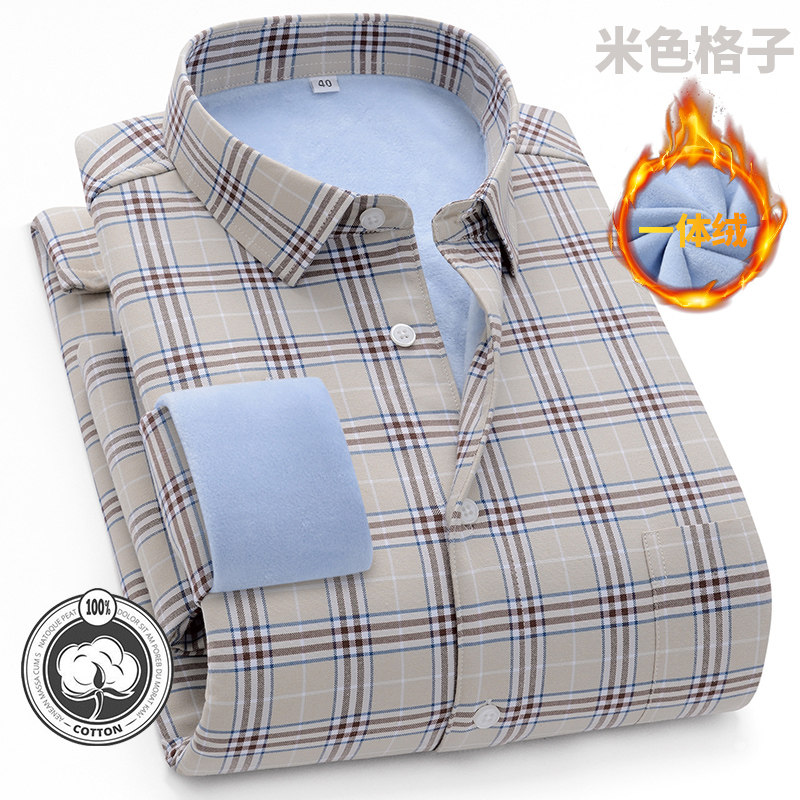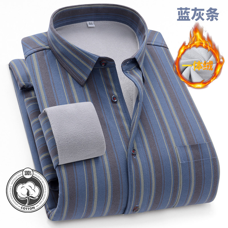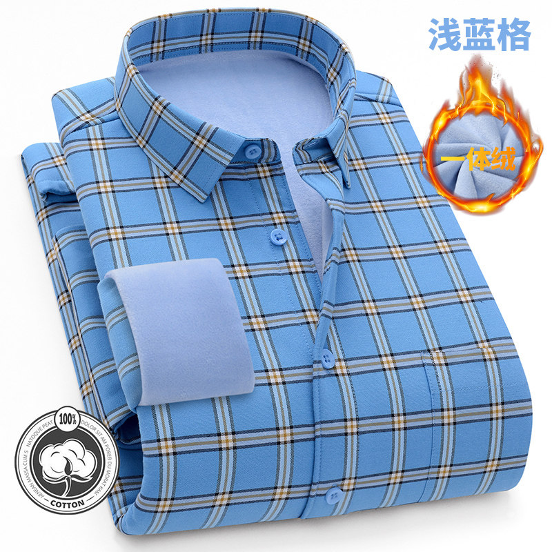 男式加肥加大纯棉保暖衬衫冬季厚款肥佬宽松胖子大码加绒加厚衬衣