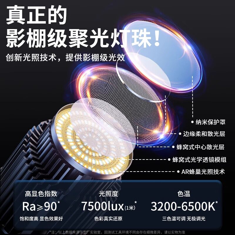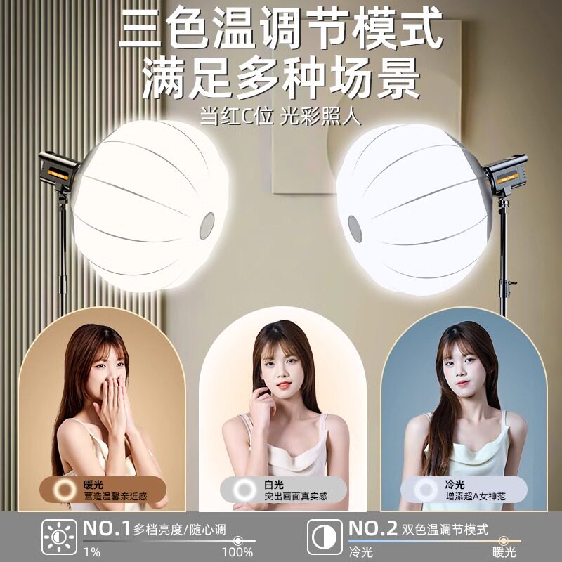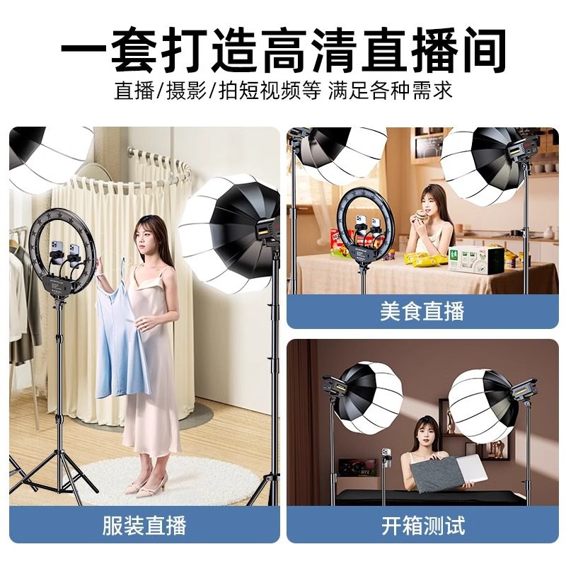 直播补光灯主播专业专用LED室内拍照COB摄影灯网红美颜发丝打光灯背景间氛围球形深口柔光箱常亮太阳拍摄灯光