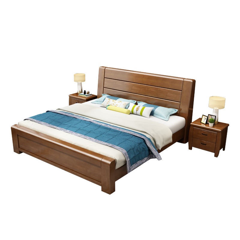 新中式实木床1.8米大床1.5M双人床简约经济型现代家具主卧室储物