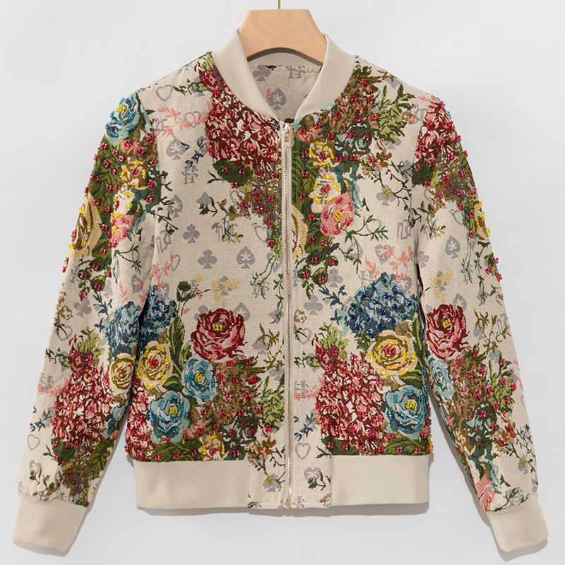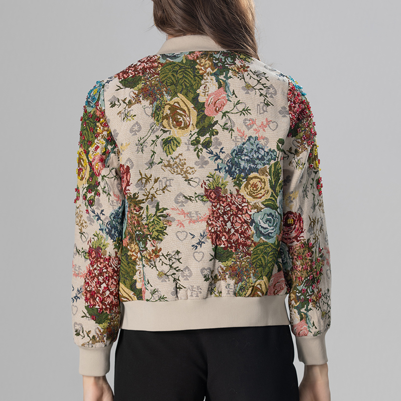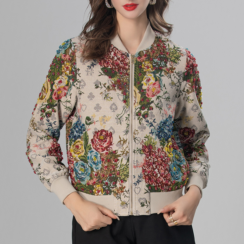 短款外套女2024新款钉珠提花休闲百搭女士夹克长袖薄款棒球服秋季