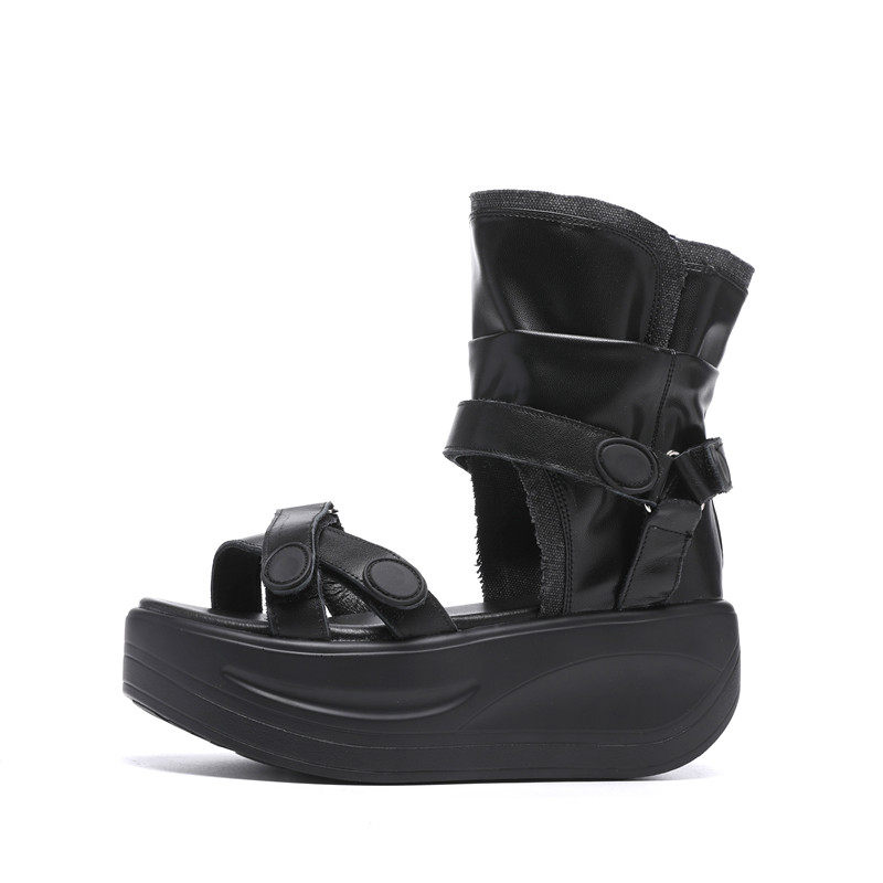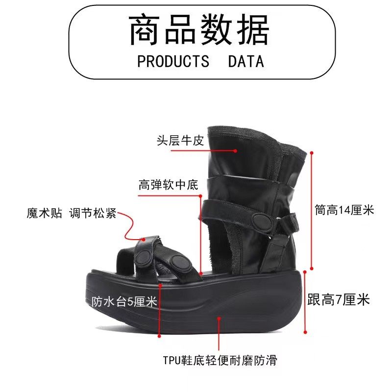 欧洲站2025夏季新款凉鞋女厚底松糕鞋罗马鞋高帮凉靴真皮摇摇鞋潮