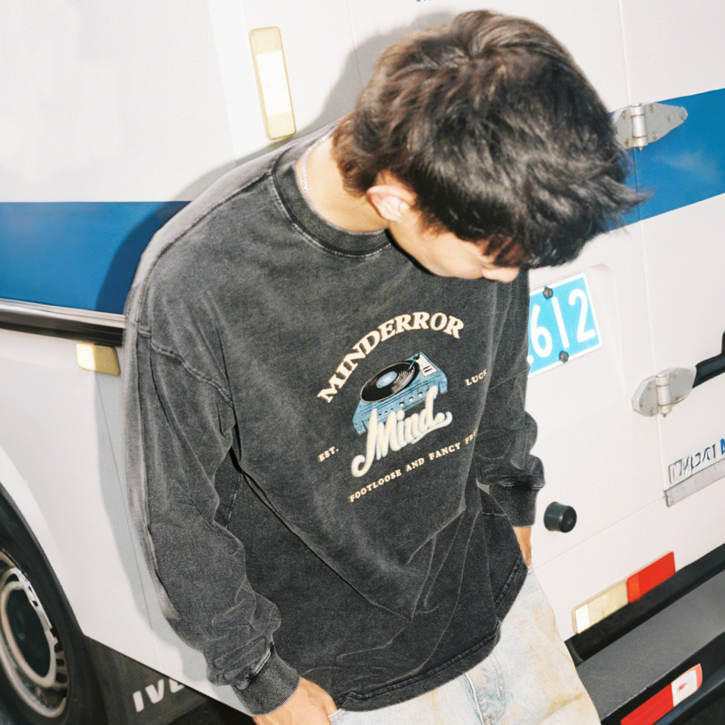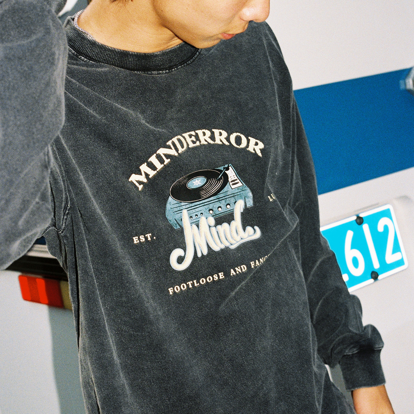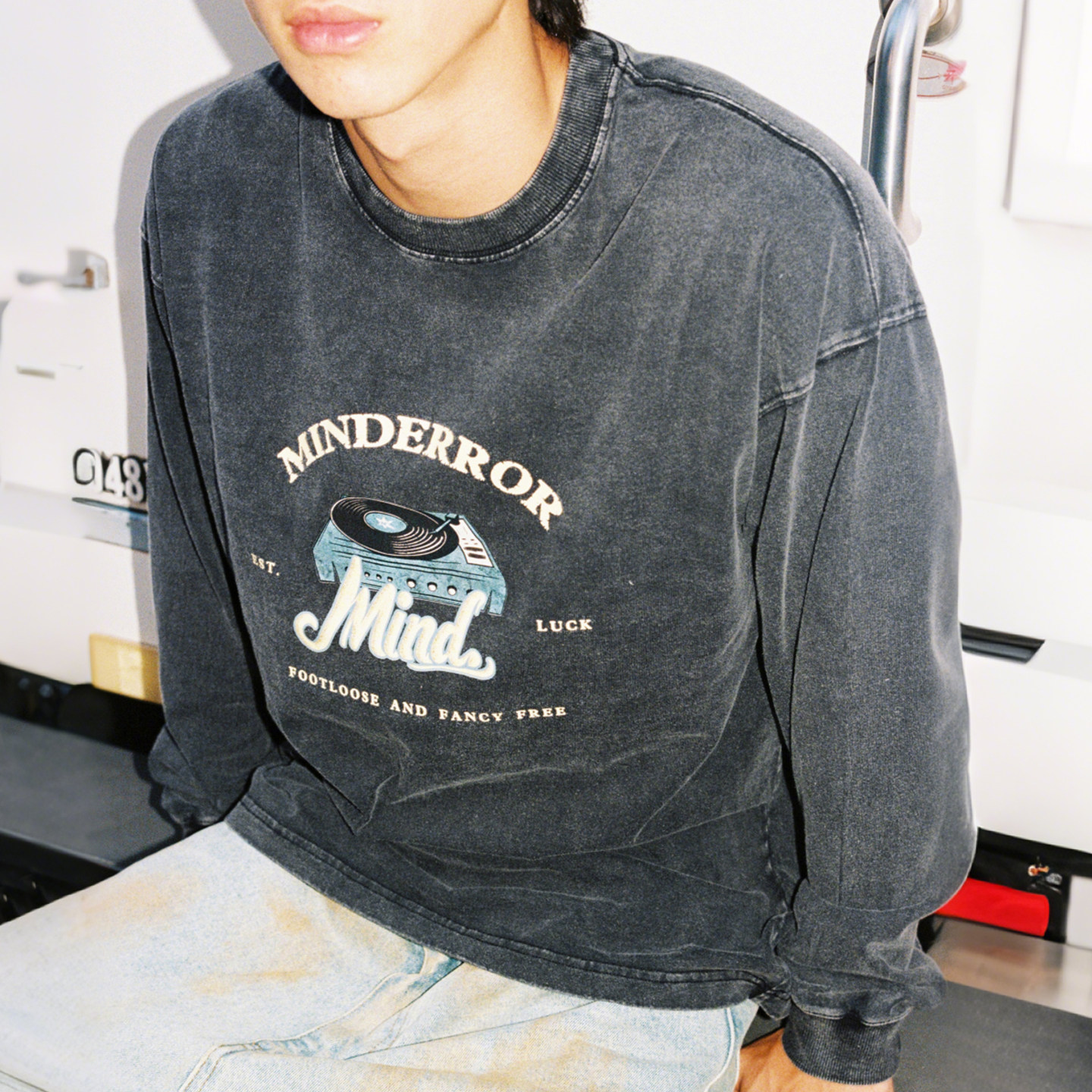 MindError唱片机印花长袖T恤