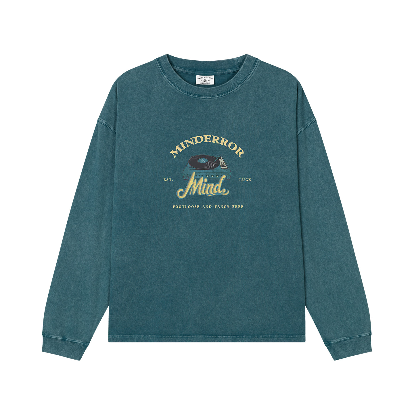 MindError 复古唱片机印花纯棉长袖T恤男女秋季水洗宽松休闲上衣