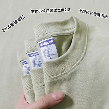 260G重磅纯棉短袖T恤夏季纯色男女情侣圆领打底棉体恤衫宽松上衣