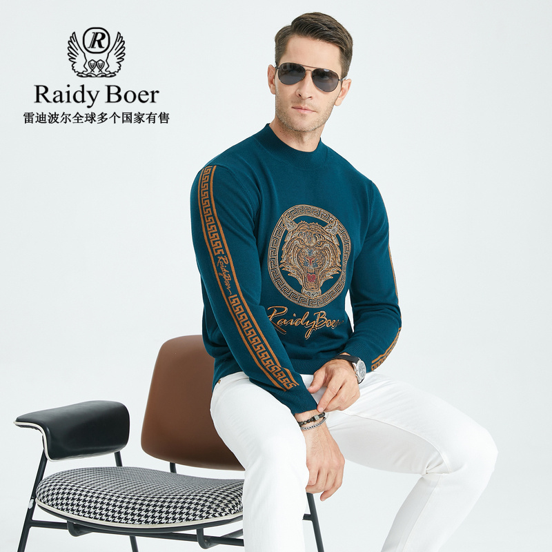 Raidy Boer/雷迪波尔秋冬季男半高领刺绣烫钻针织衫羊毛毛衣 5010