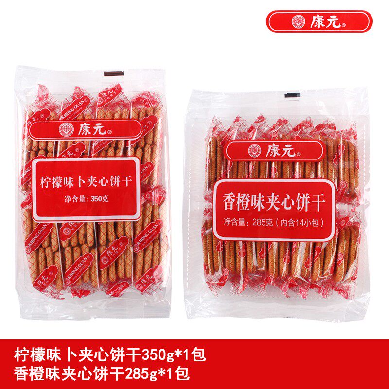 康元雪克饼干夹心600g柠檬老式饼干提子怀旧童年早餐饼小包装整箱