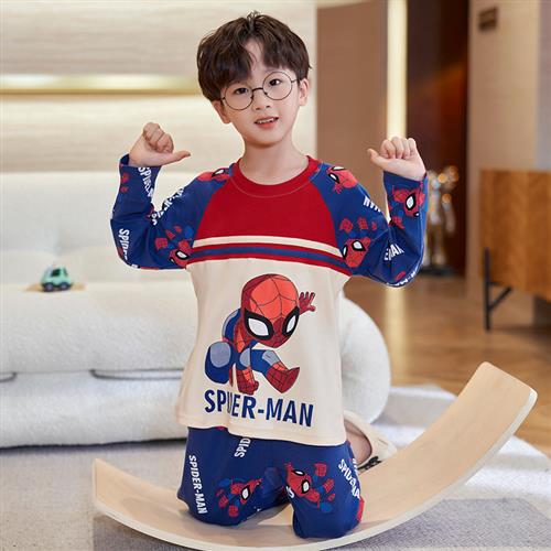 蜘蛛侠男童睡衣儿童春秋季家居服纯棉长袖中大童男孩青少年套装薄