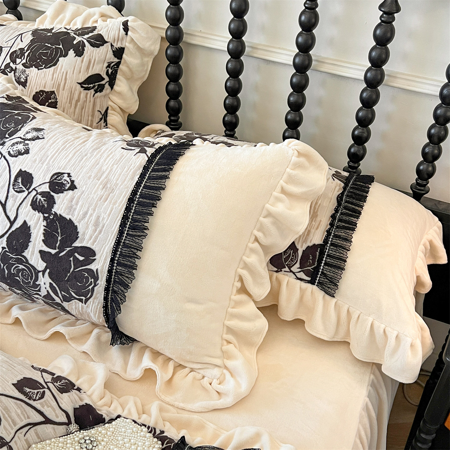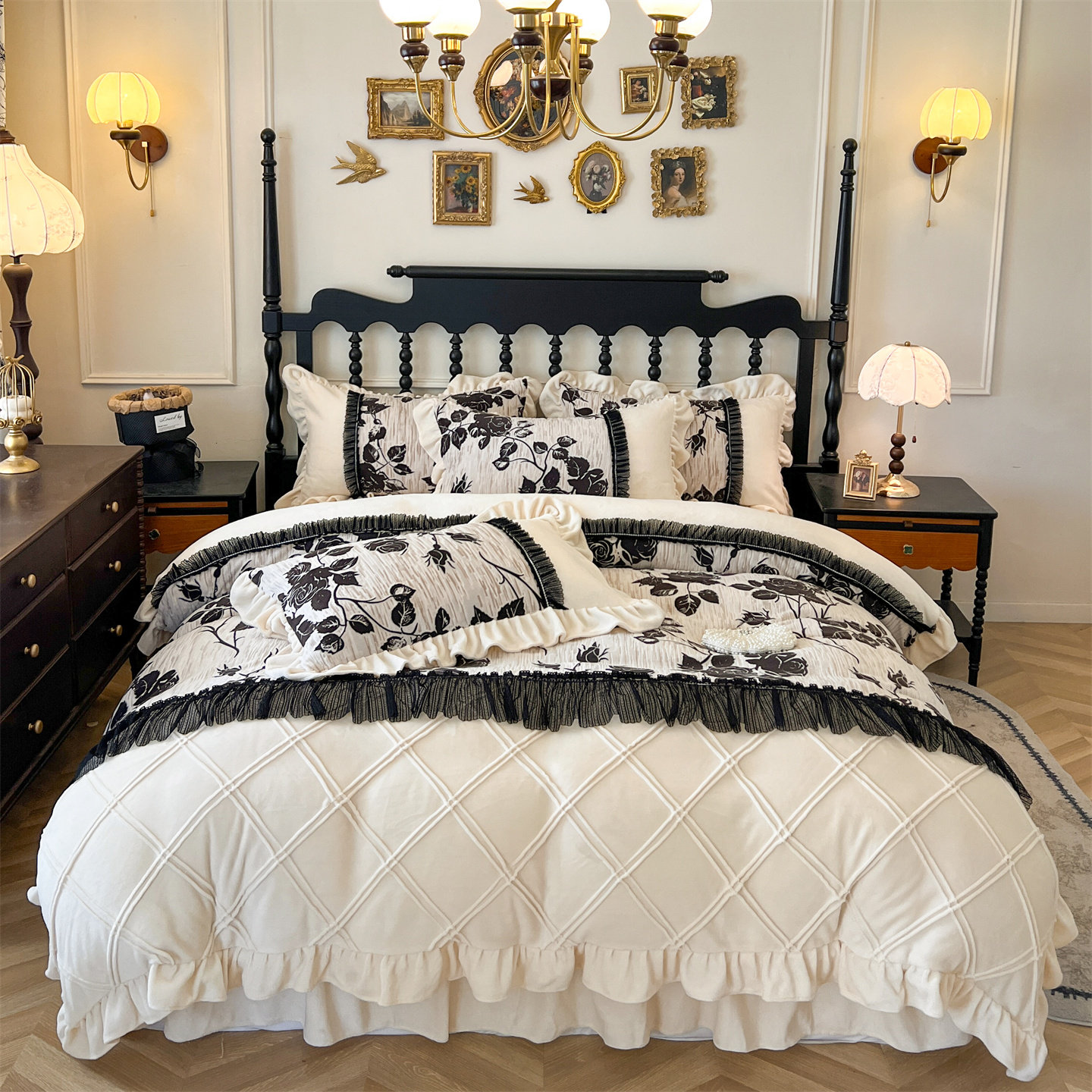 法式复古花卉保暖款牛奶绒四件套