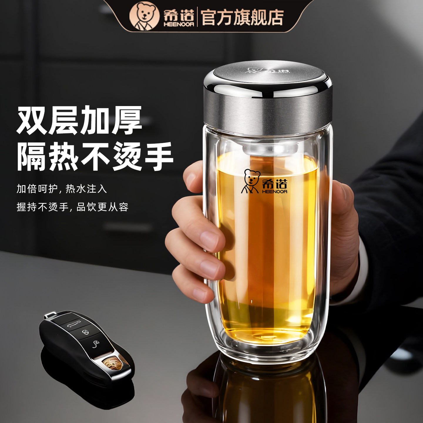 希诺玻璃杯双层男女士办公泡茶杯
