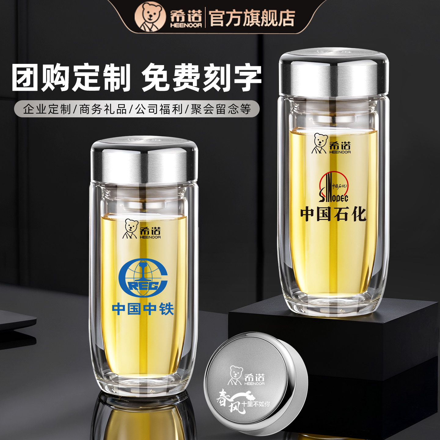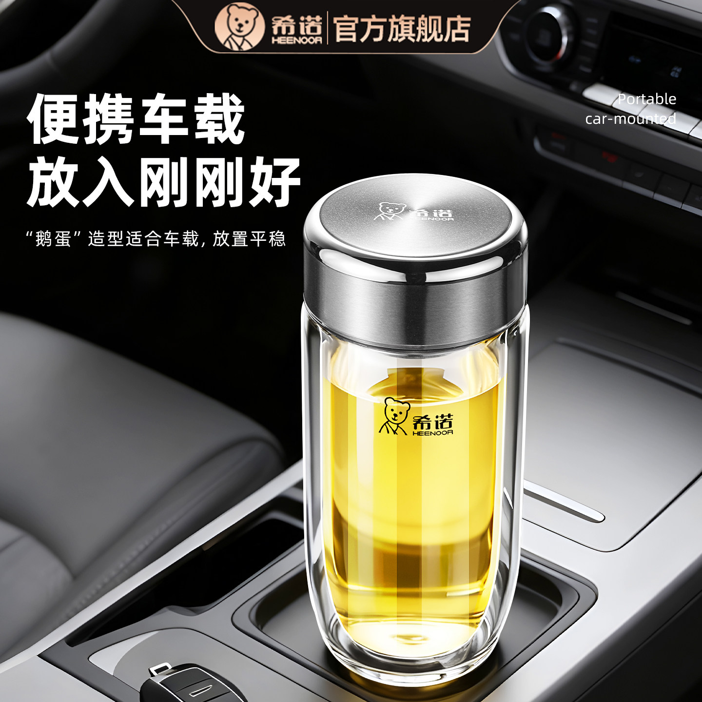 希诺玻璃杯双层2026新款男士商务礼盒办公泡茶杯鹅蛋便携车载水杯