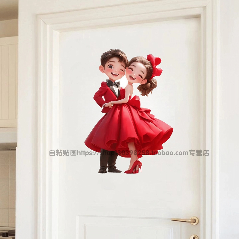 喜庆可爱结婚贴纸自粘婚房房间门窗玻璃贴画情侣卧室装饰布置用品