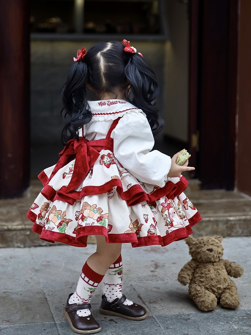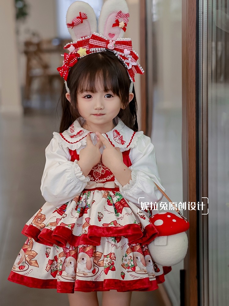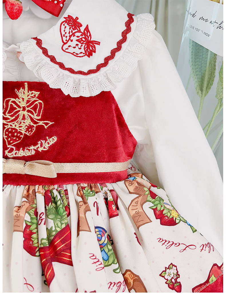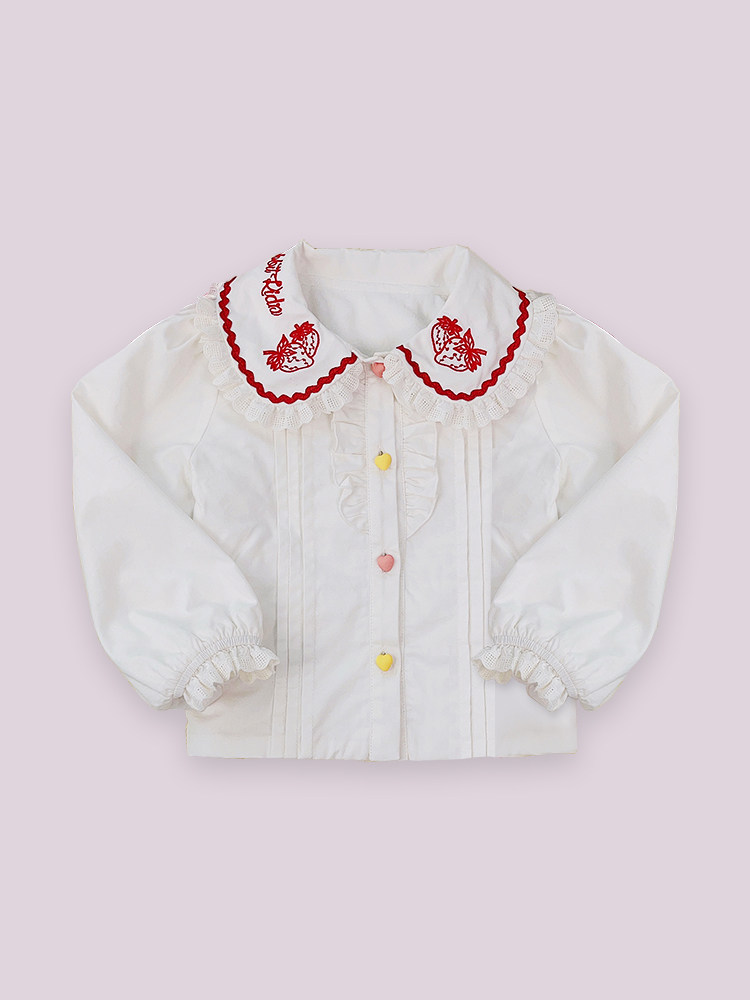 草莓刺绣纯棉衬衫-长袖娃娃领-妮拉兔原创Lolita春秋打底女童上衣