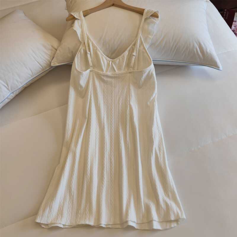 睡裙女夏季纯棉花边中长款吊带连衣裙薄款性感纯欲风带胸垫家居服