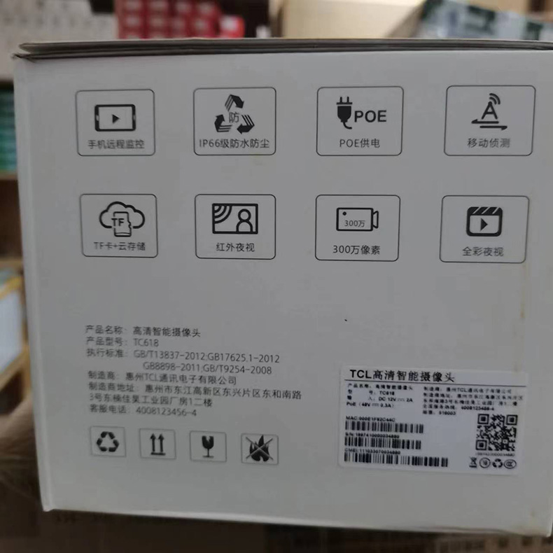 TCL摄像头TC618和家亲app POE供电300w像素夜市全彩双向语音对讲