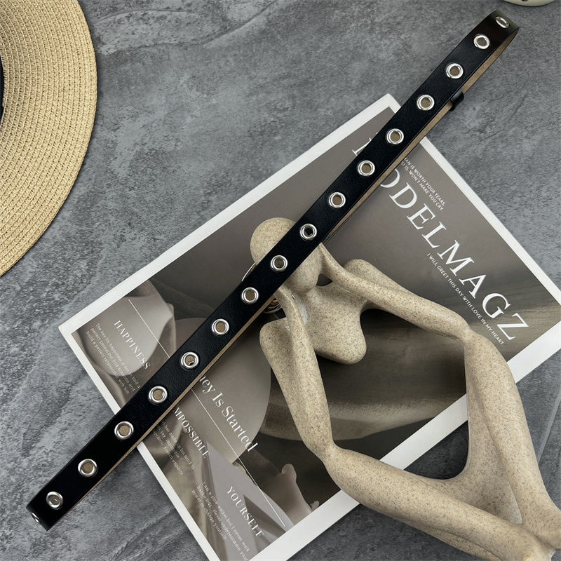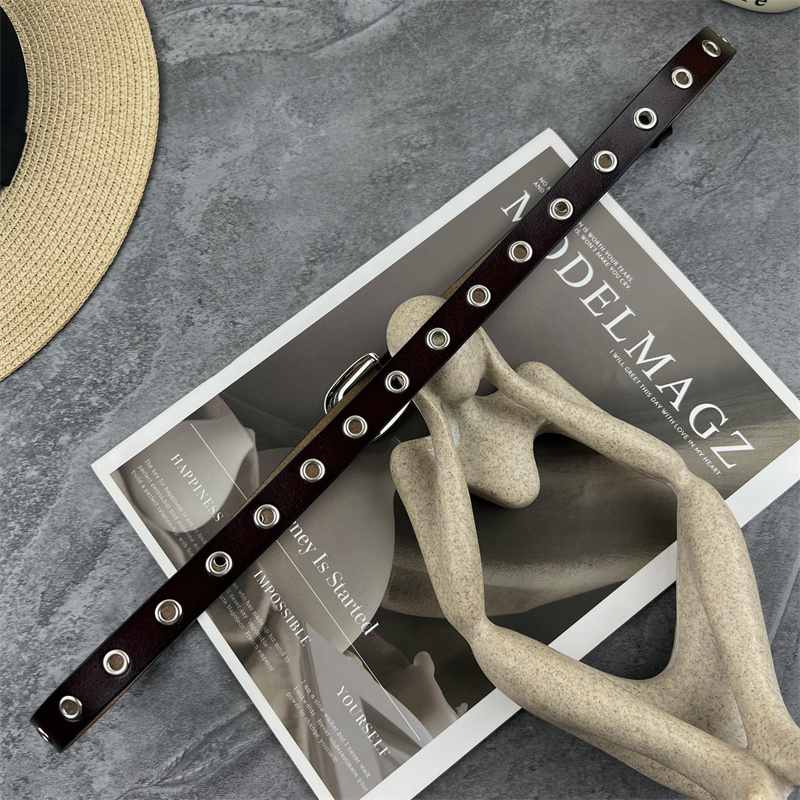 轻奢小众皮带女款真皮配裙子装饰连衣裙全孔铆钉软皮细腰带免打孔