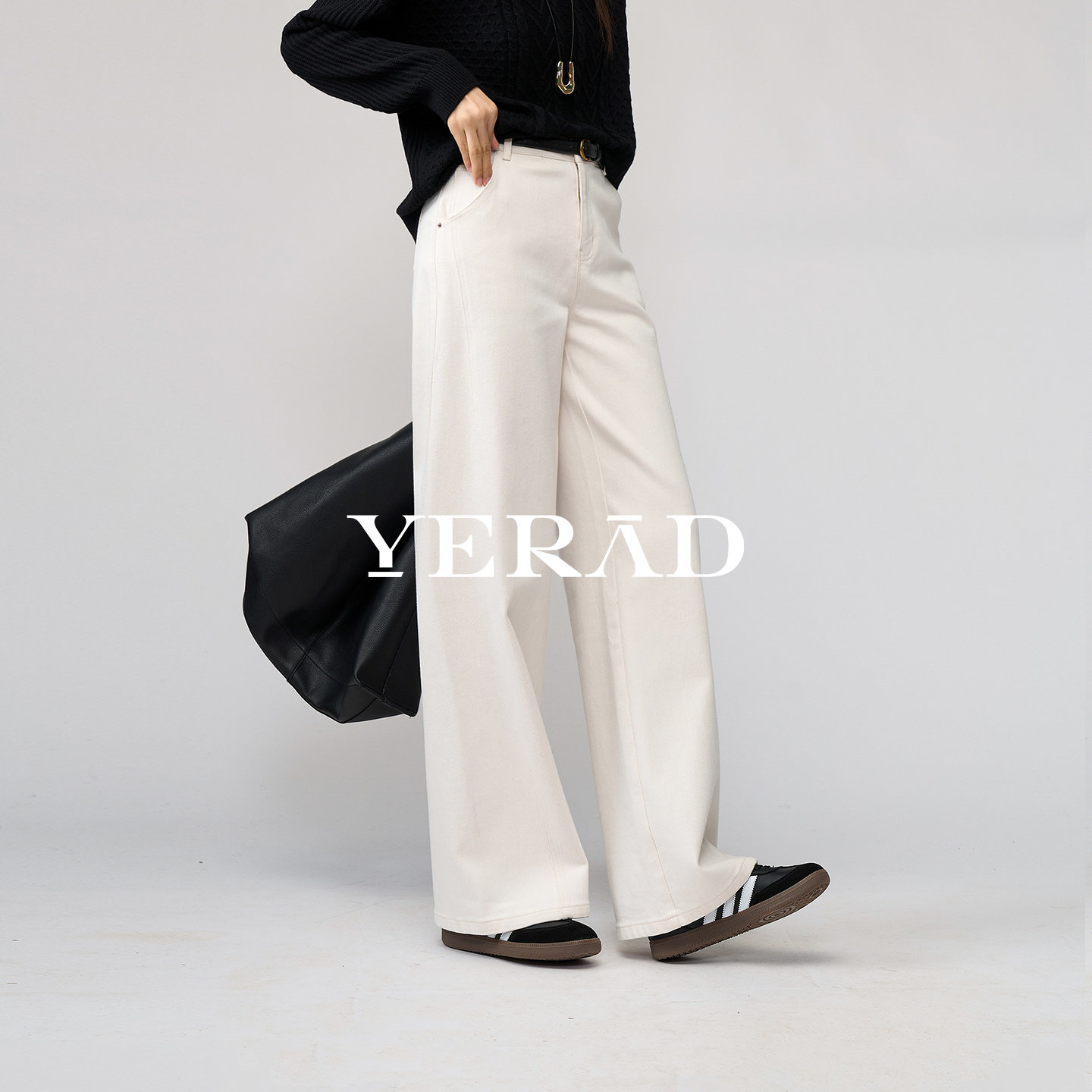娅丽达雪绒阔腿裤女2025冬季牛仔裤新款拖地加绒白色休闲直筒女裤
