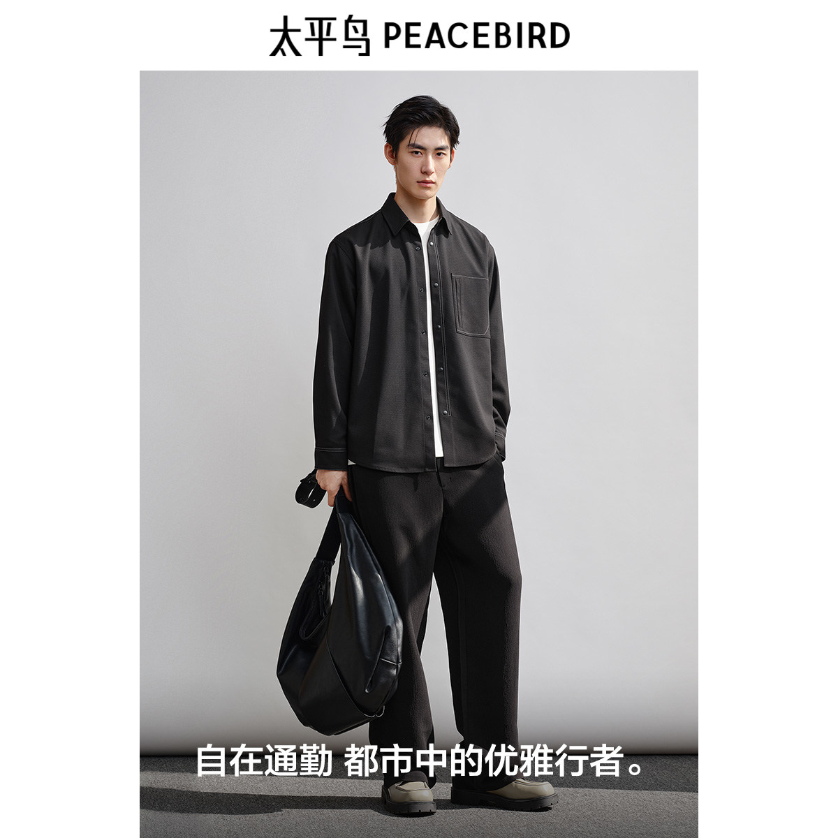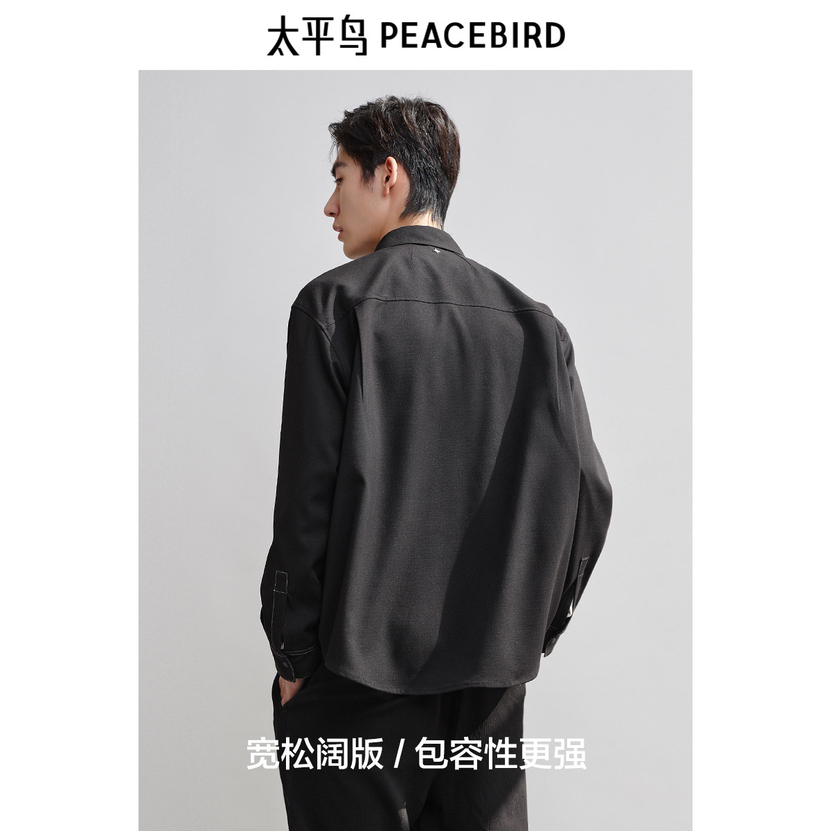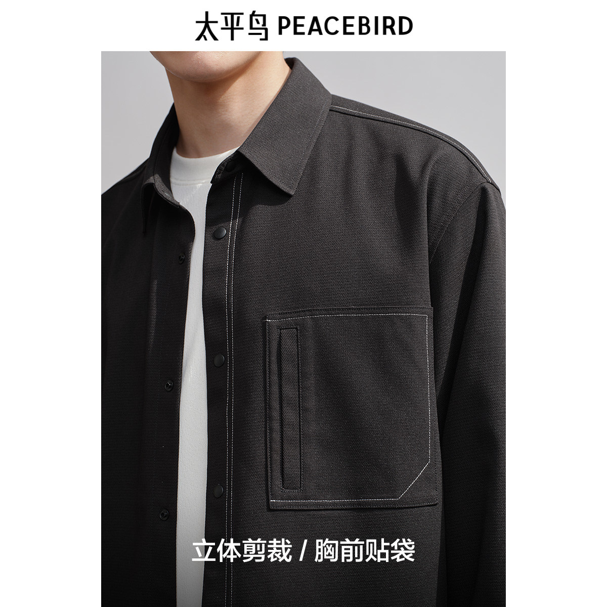 太平鸟男装 休闲衬衫25春新款复古立体提花宽松明线口袋男士衬衫