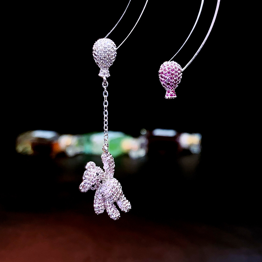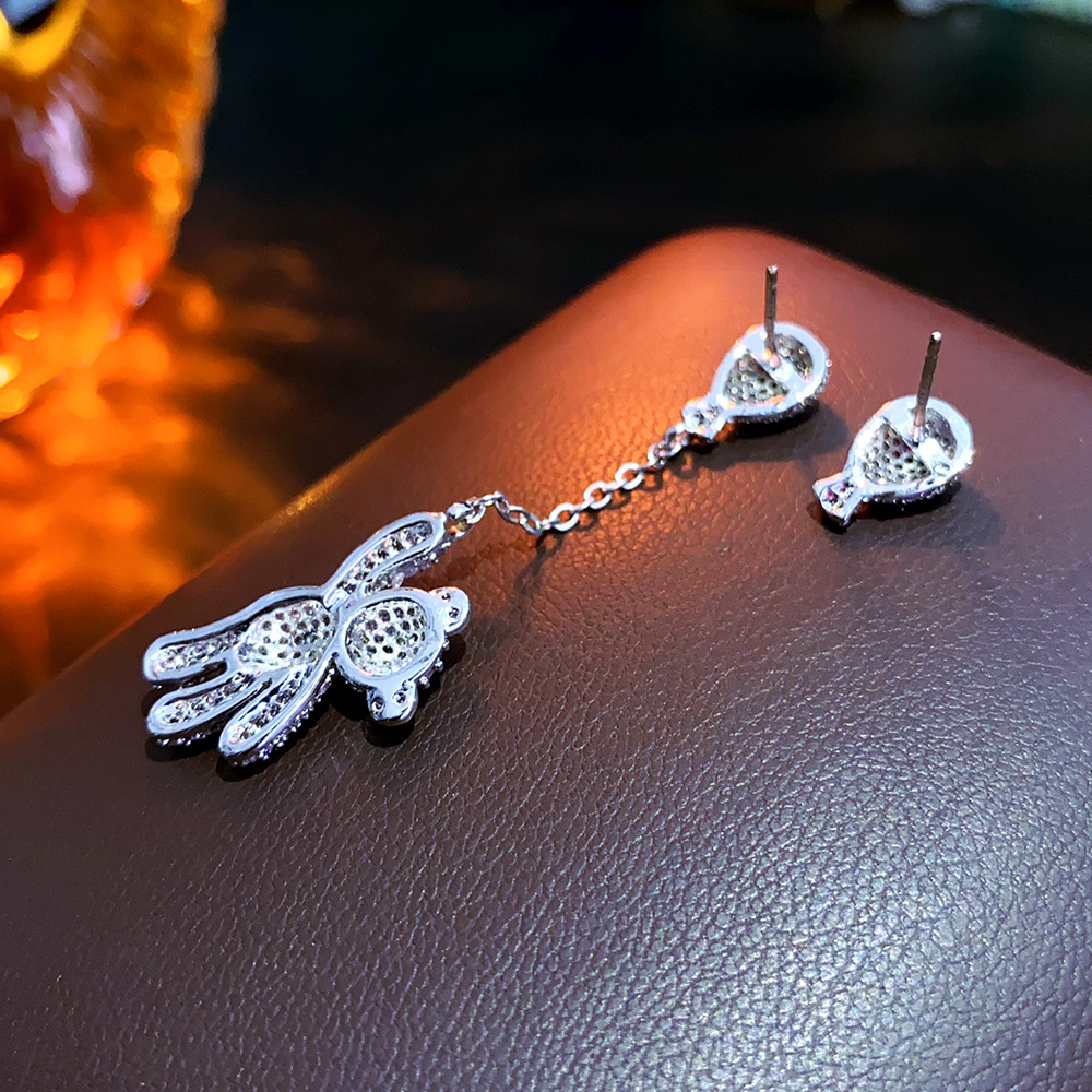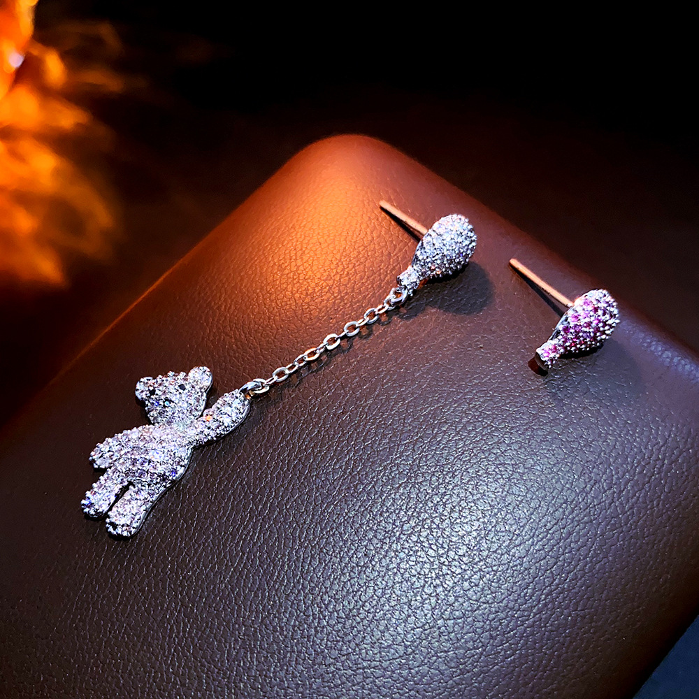 跨境爆款重工镶满锆石不对称可爱熊耳环轻奢时尚高档耳钉耳饰