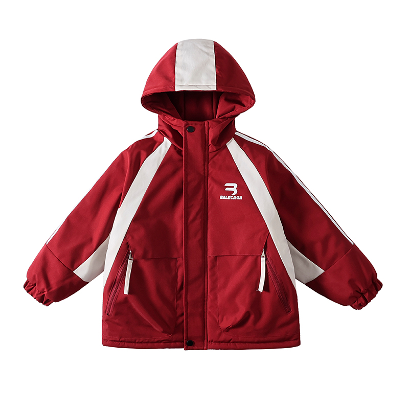 男童红色夹棉冲锋衣冬装2025新款儿童冬季加厚男孩保暖棉服外套潮