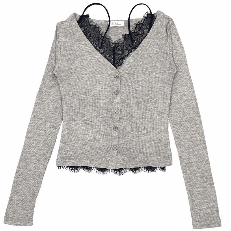 韩国东大门春装新款修身性感薄款开衫低胸蕾丝边吊带女时尚两件套