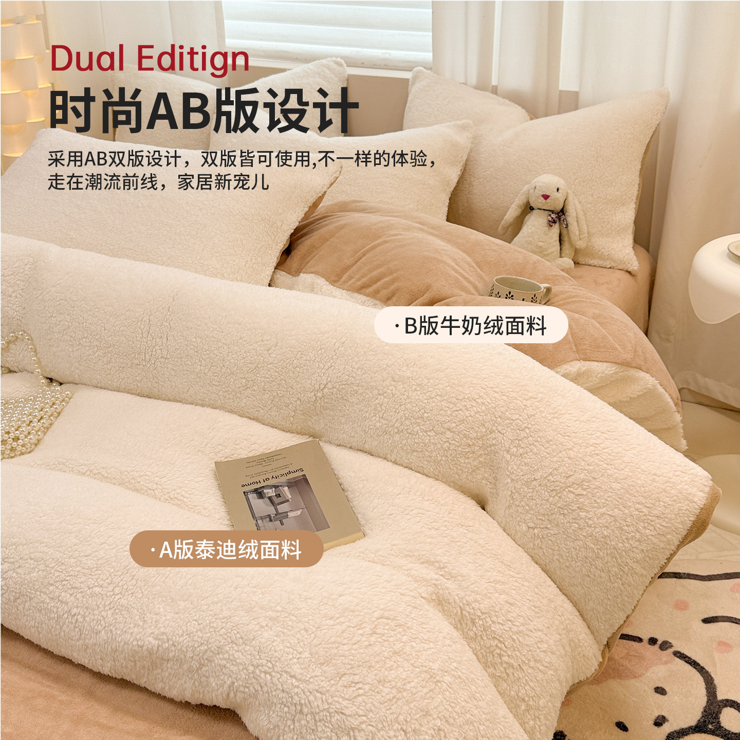 红豆冬季加厚牛奶绒床上四件套床单被套双面加绒珊瑚绒宿舍三件套