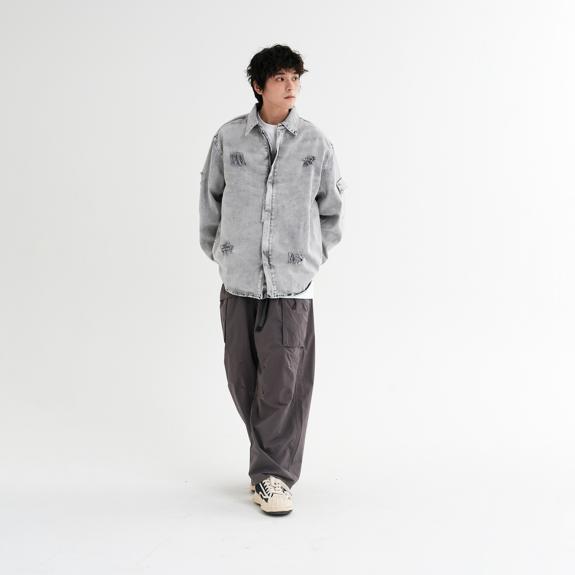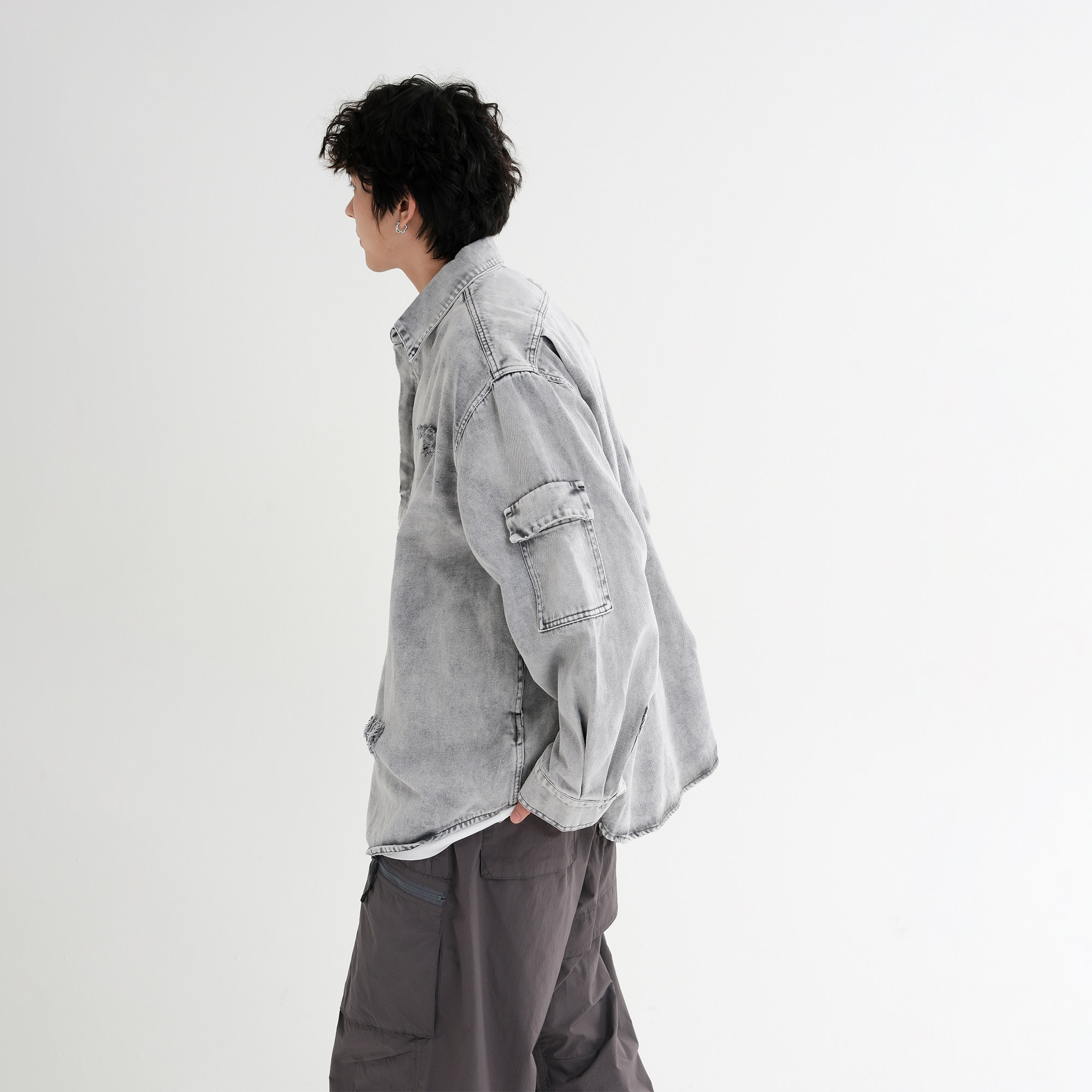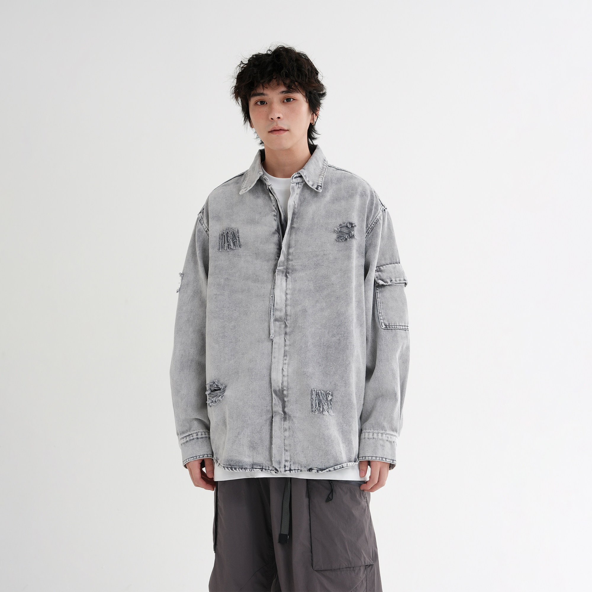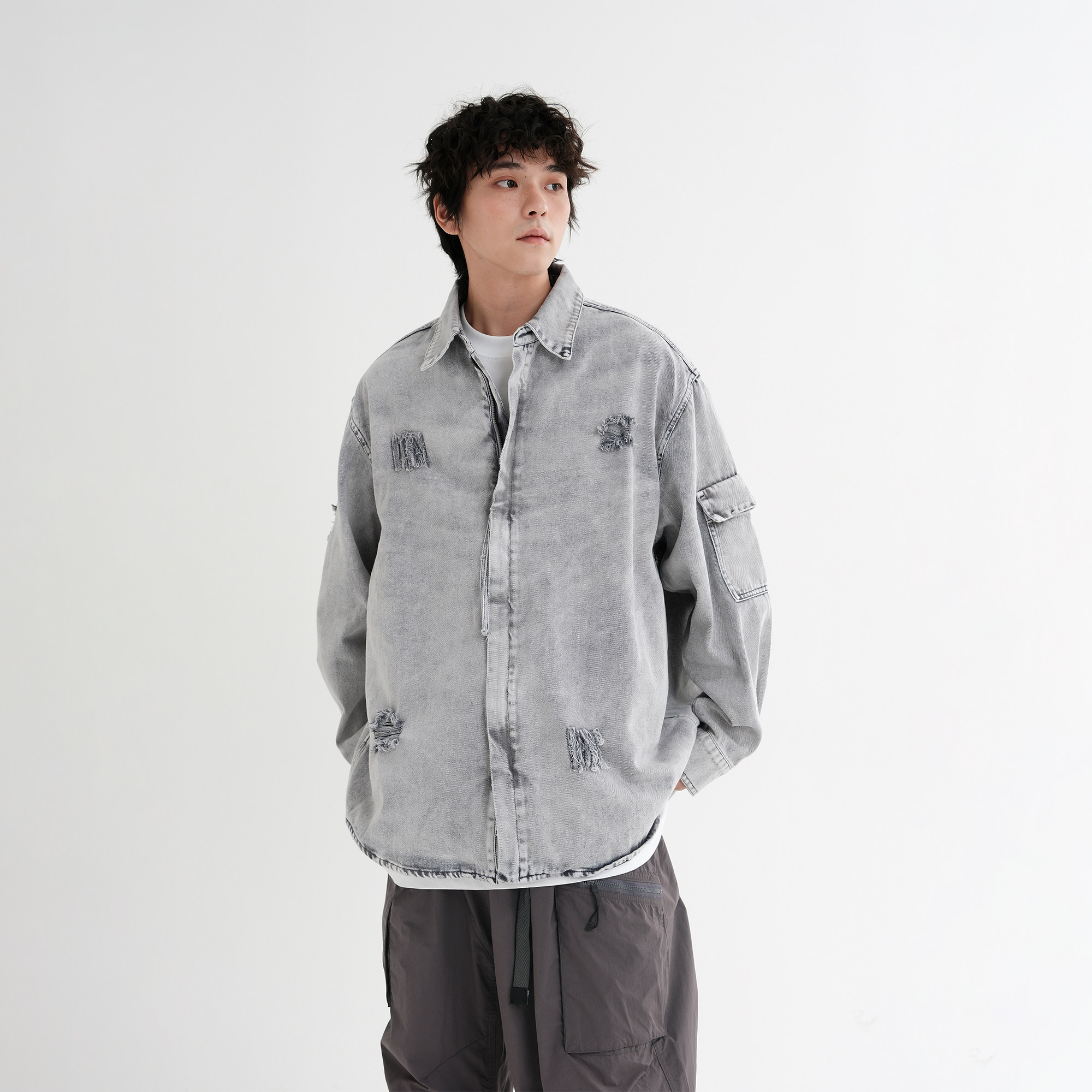 2025新款磨破做旧牛仔衬衫