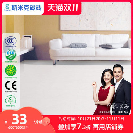 斯米克瓷砖地砖600*600客厅厨房卧室全瓷抛光地砖防滑琥珀米白