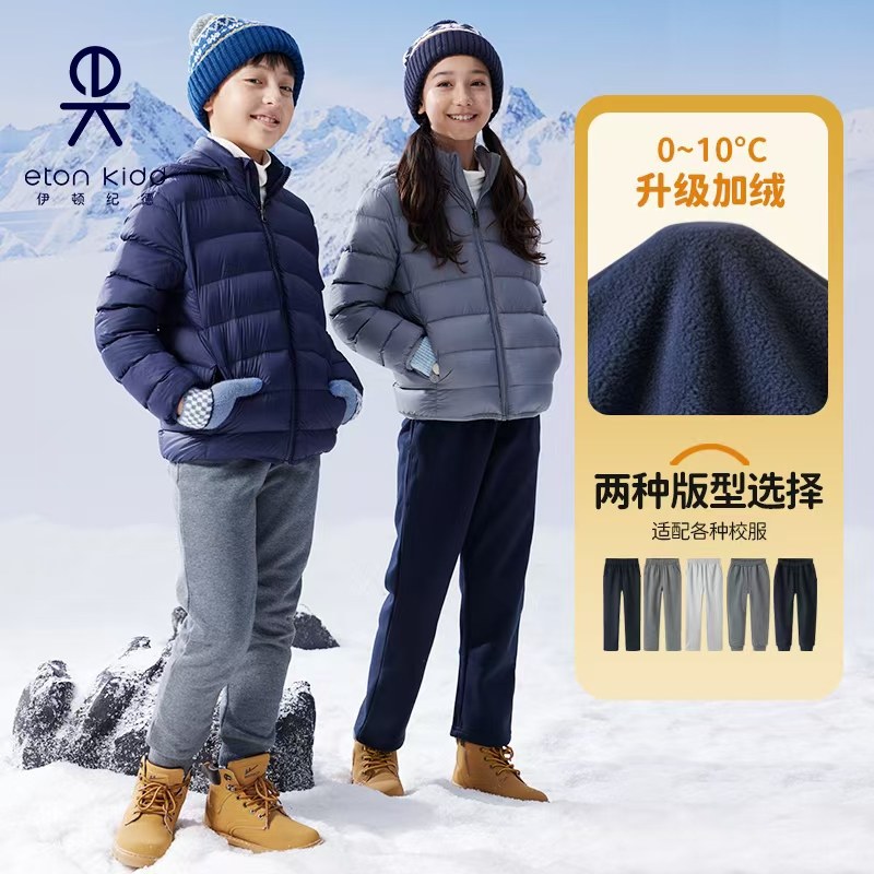 伊顿纪德品牌校服中小学生加绒加厚直筒收脚束口运动裤校裤22y902
