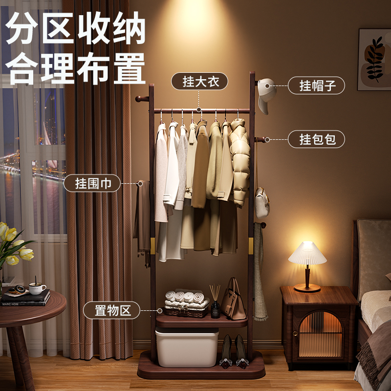 衣架落地实木挂衣架卧室家用衣帽架立式房间挂衣服的架子办公室式