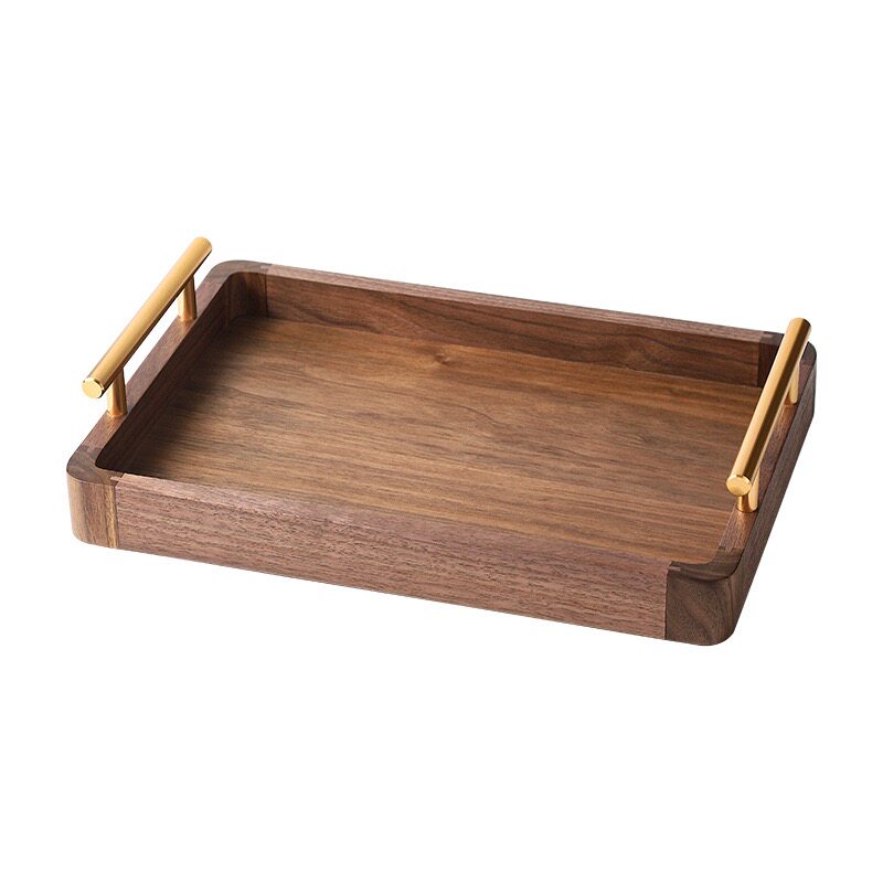 轻奢北美黑胡桃木托盘实木玻璃干果坚果盘零食点心糖果收纳盒