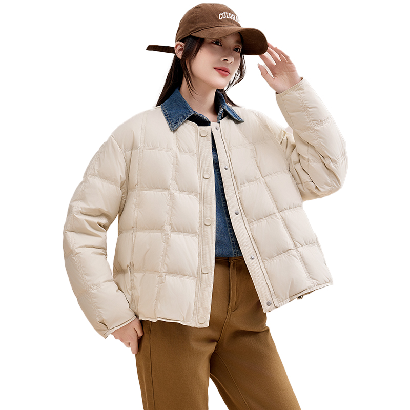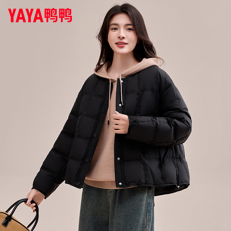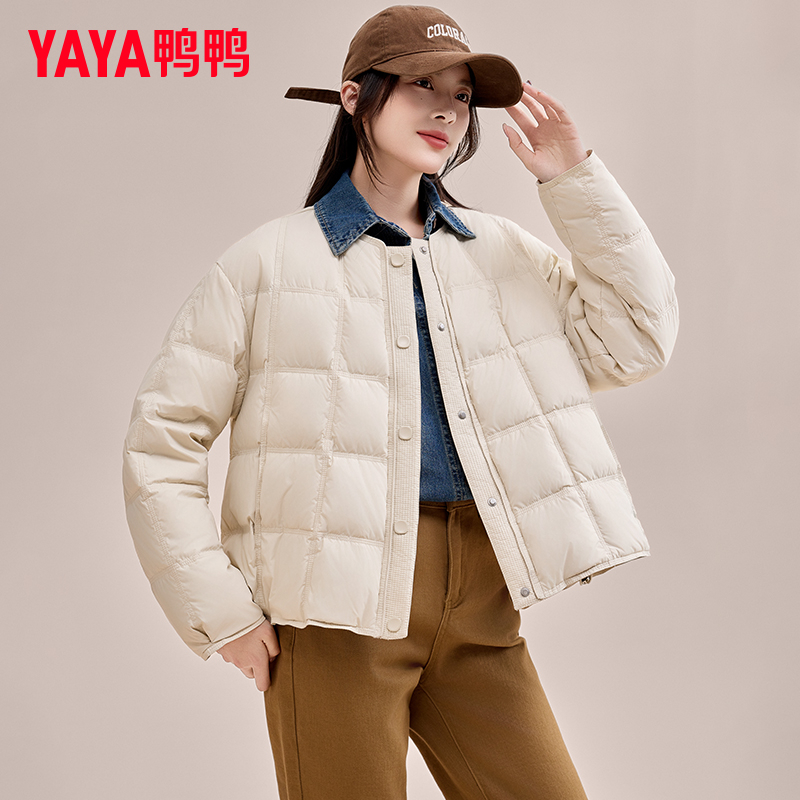 鸭鸭正品短款轻薄羽绒服女2025新款polo领休闲百搭小个子短款外套