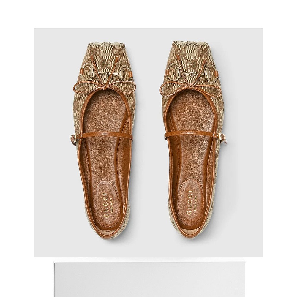 自营欧洲直邮Gucci/古驰 Horsebit系列女士米色/深棕色帆布马衔扣