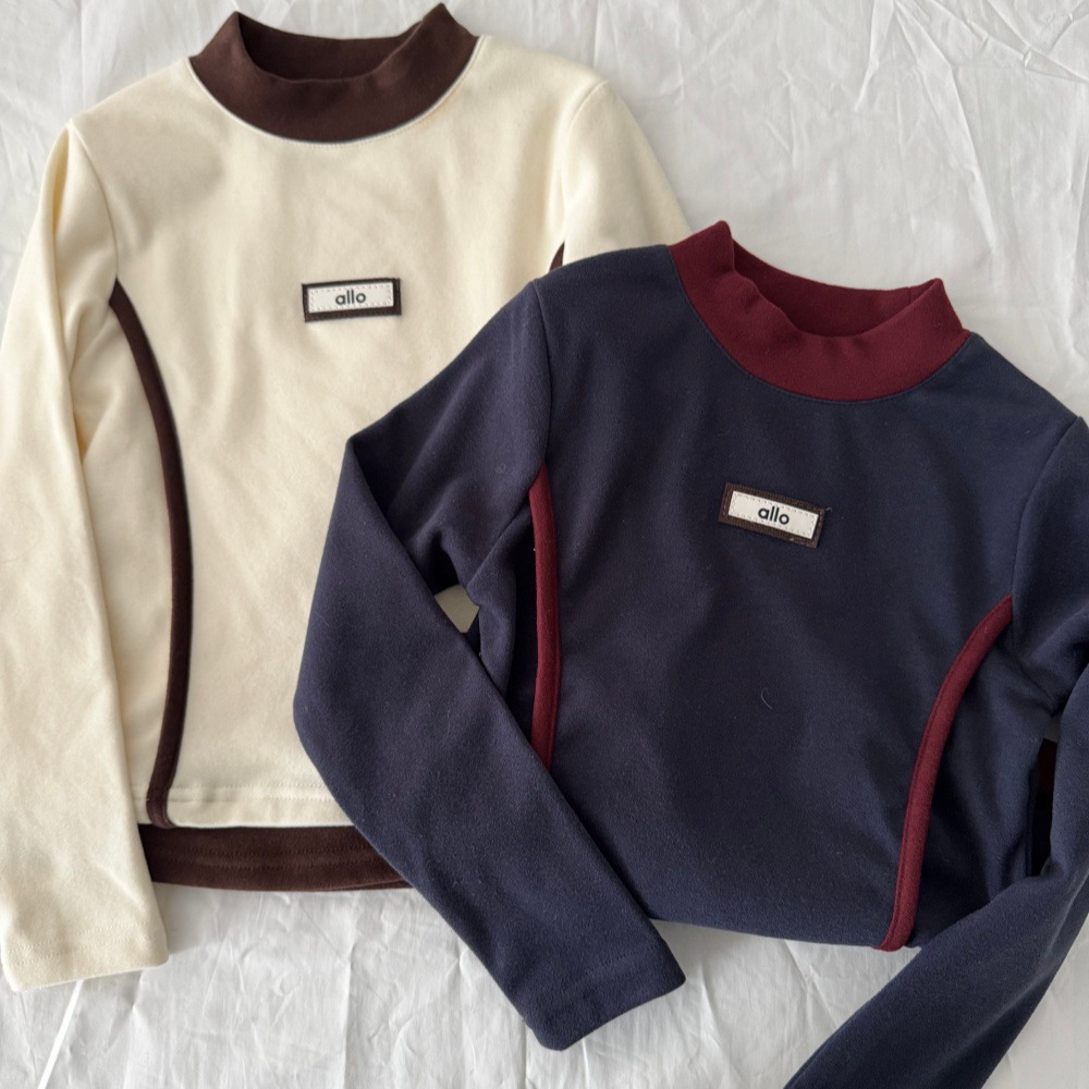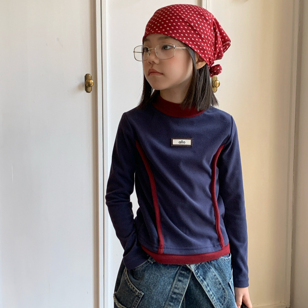 女童秋冬季打底衫加绒加厚2025新款撞色内搭韩版休闲卫衣中大