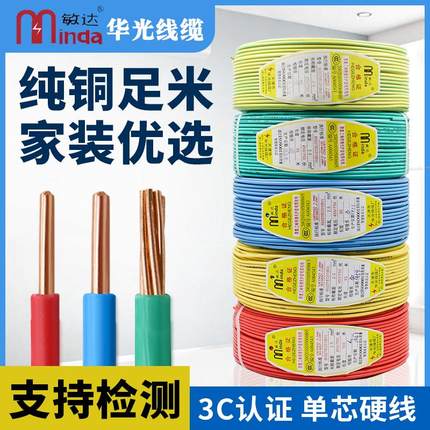 华光纯铜电线家用国标BV1.5/2.5/4/6平方线铜芯电线单芯家装电线