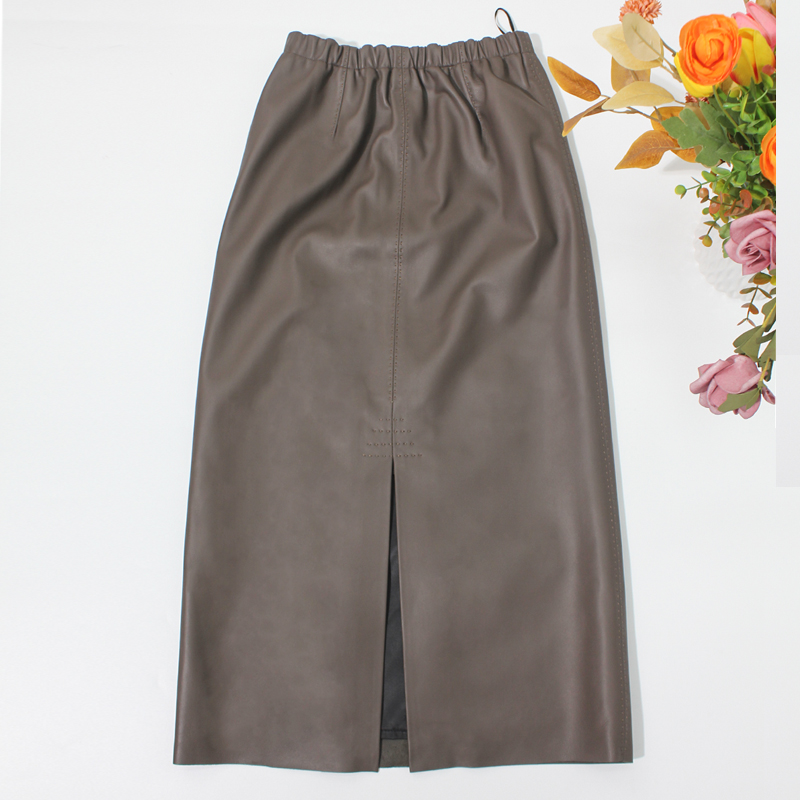 进口绵羊皮中长款开叉一步裙真皮半身裙女过膝松紧高腰包臀长裙潮