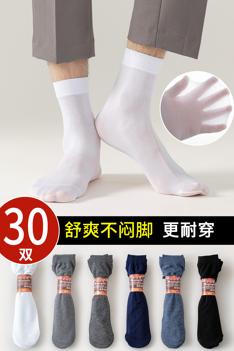 袜子男士丝袜男超薄款春夏季透气冰丝短袜防臭商务中筒黑运动男袜