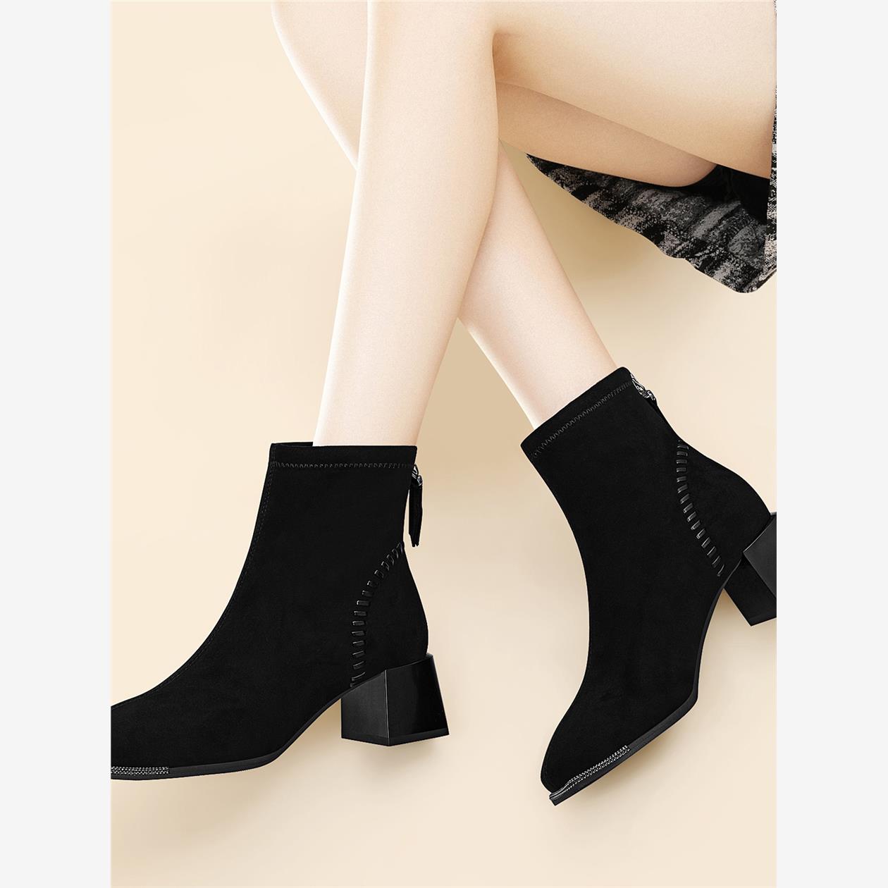 金丝兔2025新款秋冬瘦瘦靴子高跟鞋加绒女靴冬季短靴女靴子方头