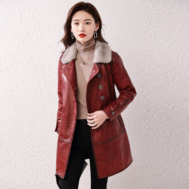 今年流行特惠真皮羽绒服女士中长款水貂毛领海宁冬季新款无缝