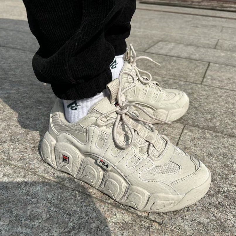 斐乐可颂面包鞋燕麦色厚底老爹鞋