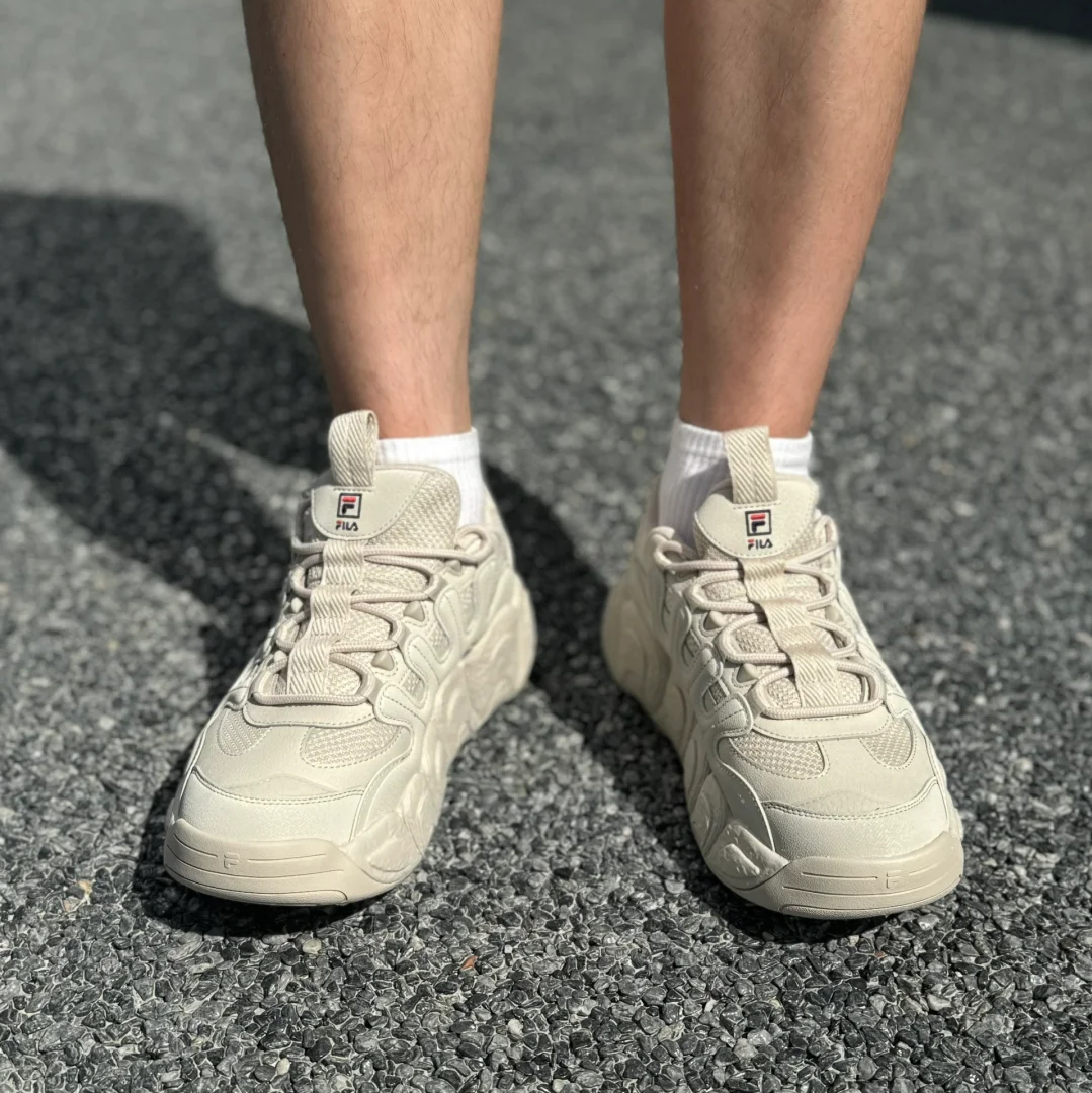 FILA斐乐可颂面包鞋 燕麦色男缓震厚底老爹运动鞋F12M342103FOM