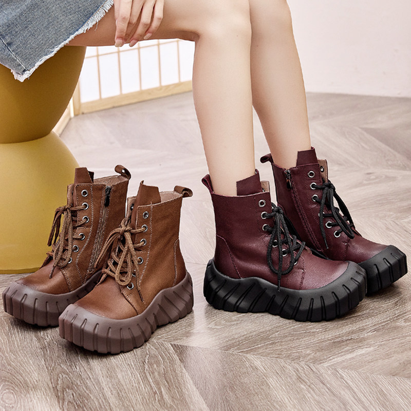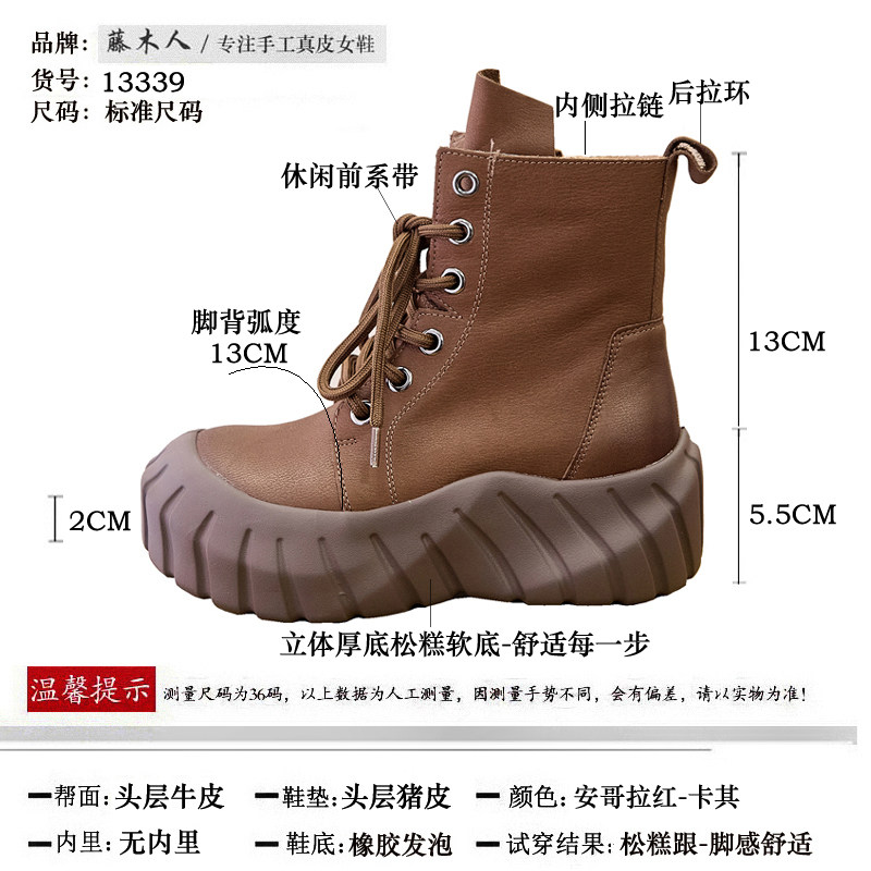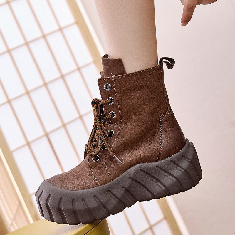 厚底马丁靴春秋单靴冬季加绒短筒女鞋韩系小裸靴小个子增高短靴子