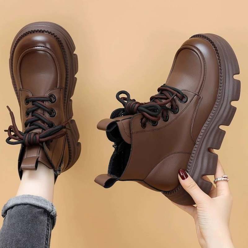 厚底轻便真皮马丁靴女短靴2025秋