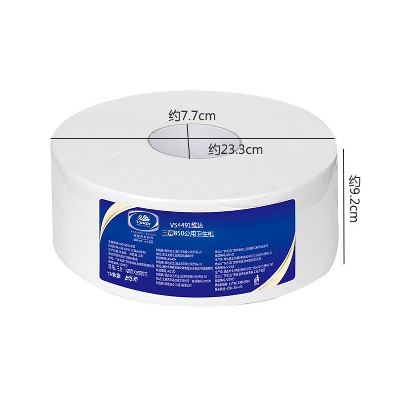 维达大卷纸VS4491三层805克卫生纸大盘纸厕纸商用卷筒纸整箱12卷