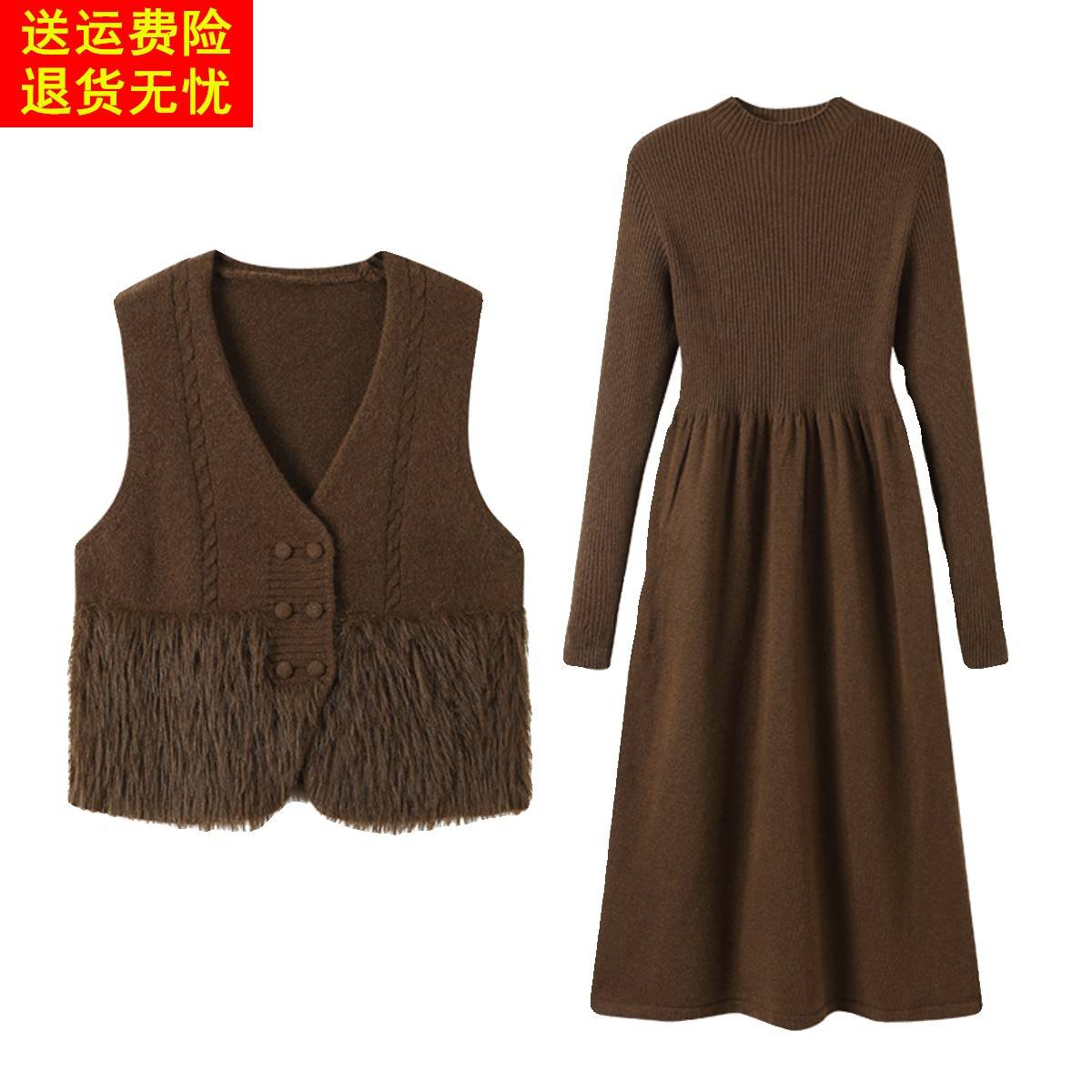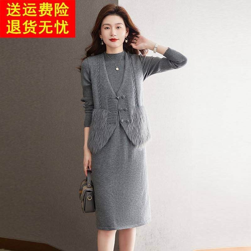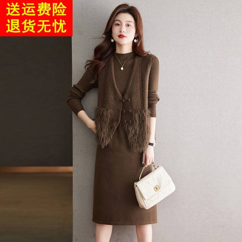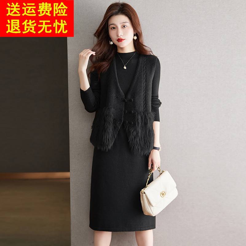 秋冬高级感复古套装女新款针织裙子短马甲贵夫人打底毛衣裙两件套