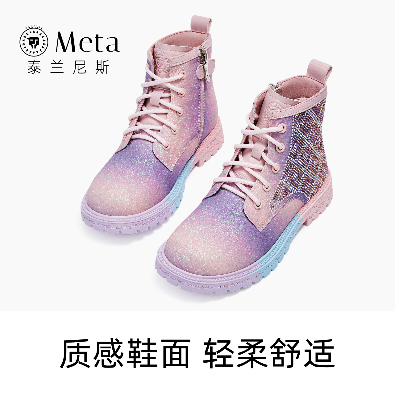 泰兰尼斯meta女童亲子靴马丁靴秋冬季新款彩色靴子中大童软底短靴