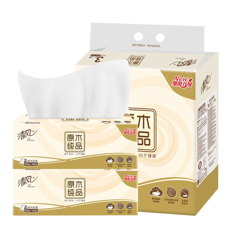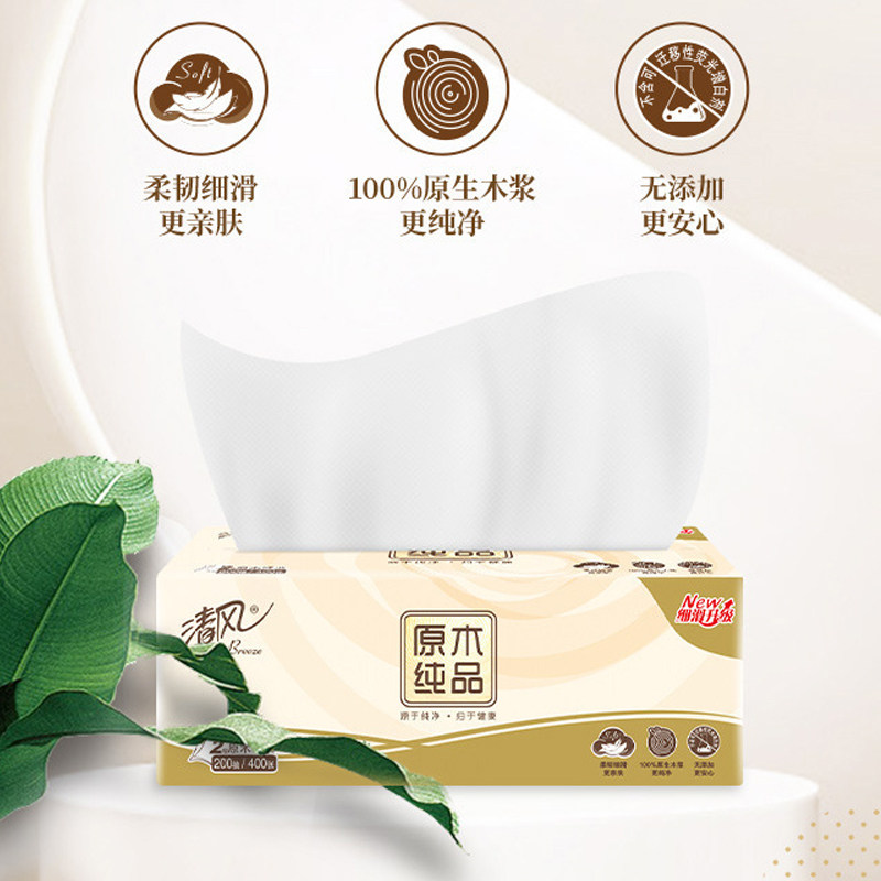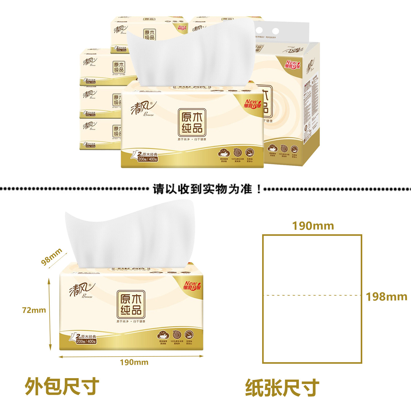 清风抽纸2层200抽12包原木卫生纸198x190软包餐巾纸大尺寸纸巾