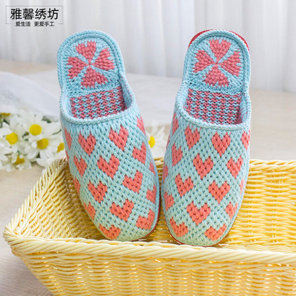 雅馨绣坊diy手工四股棉毛线桃心小花勾拖鞋基础视频看钩针材料包