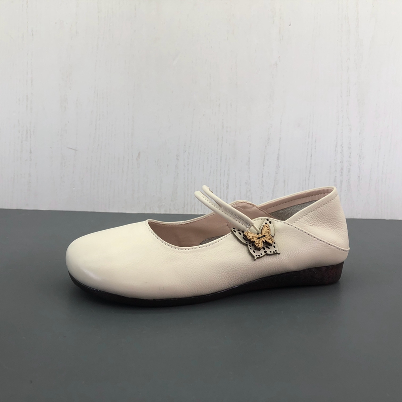 工厂断码真皮女鞋春季新款日常简约舒适圆头平底复古牛皮女单鞋